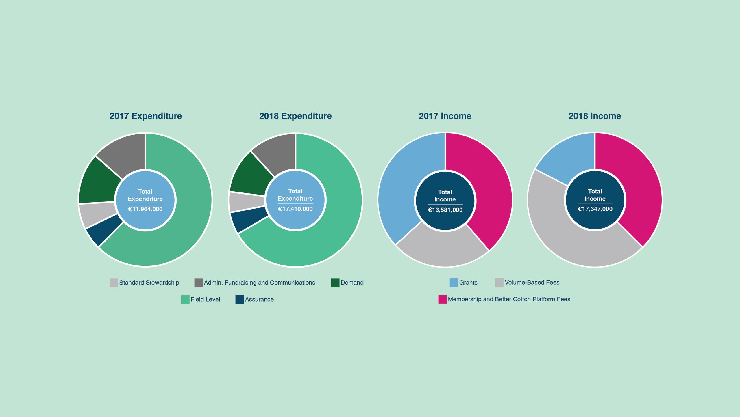 The below financial footprint is intended to help readers understand how two entities (BCI and The Better Cotton Growth and Innovation Fund) jointly mobilise funds to deliver BCI’s mission and support farmers across the world. Both entities prepare statutory accounts. Please contact BCI if you wish to see our financial statements.