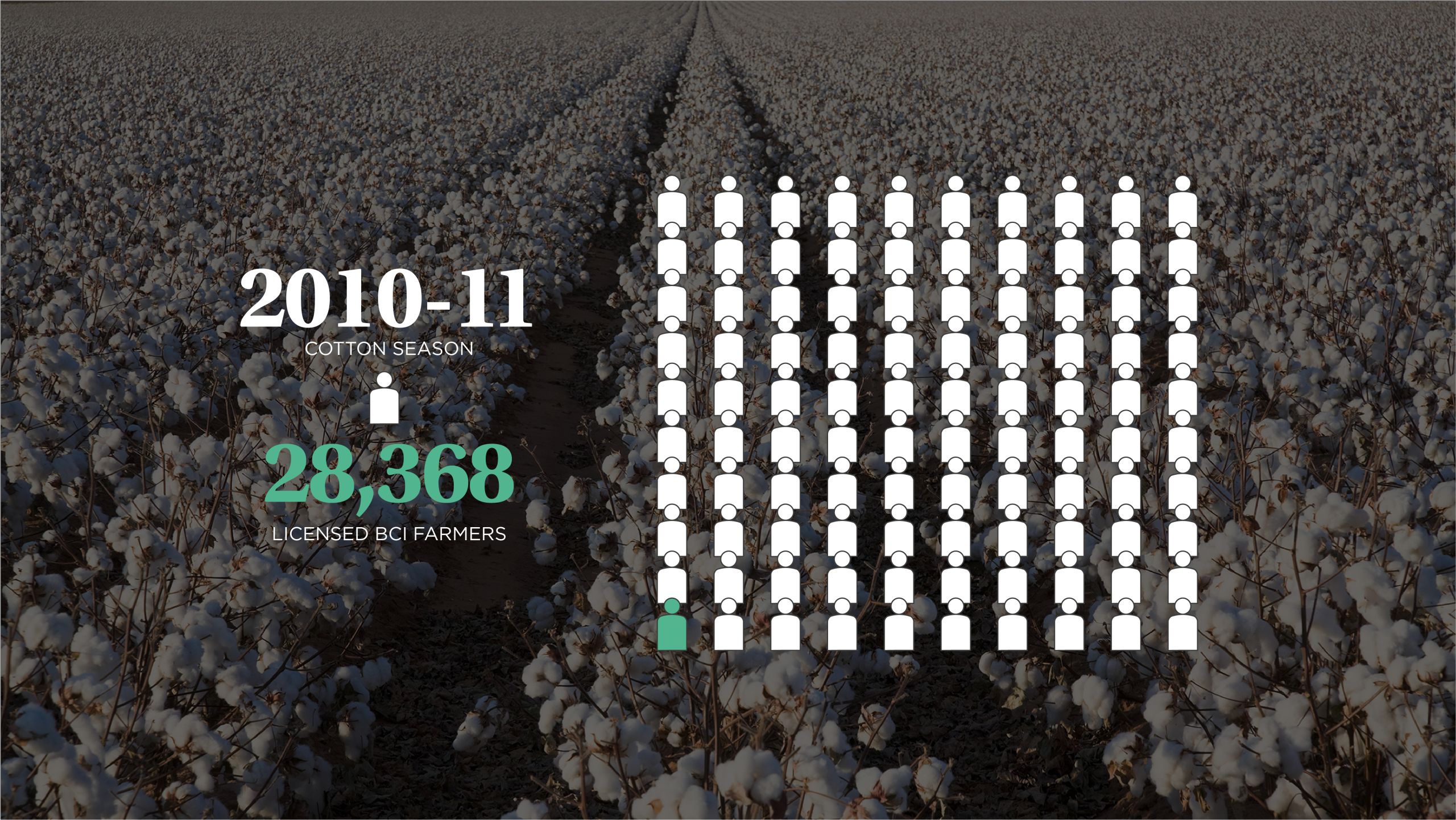 - BCI will reach and train five million cotton farmers on more sustainable practices.