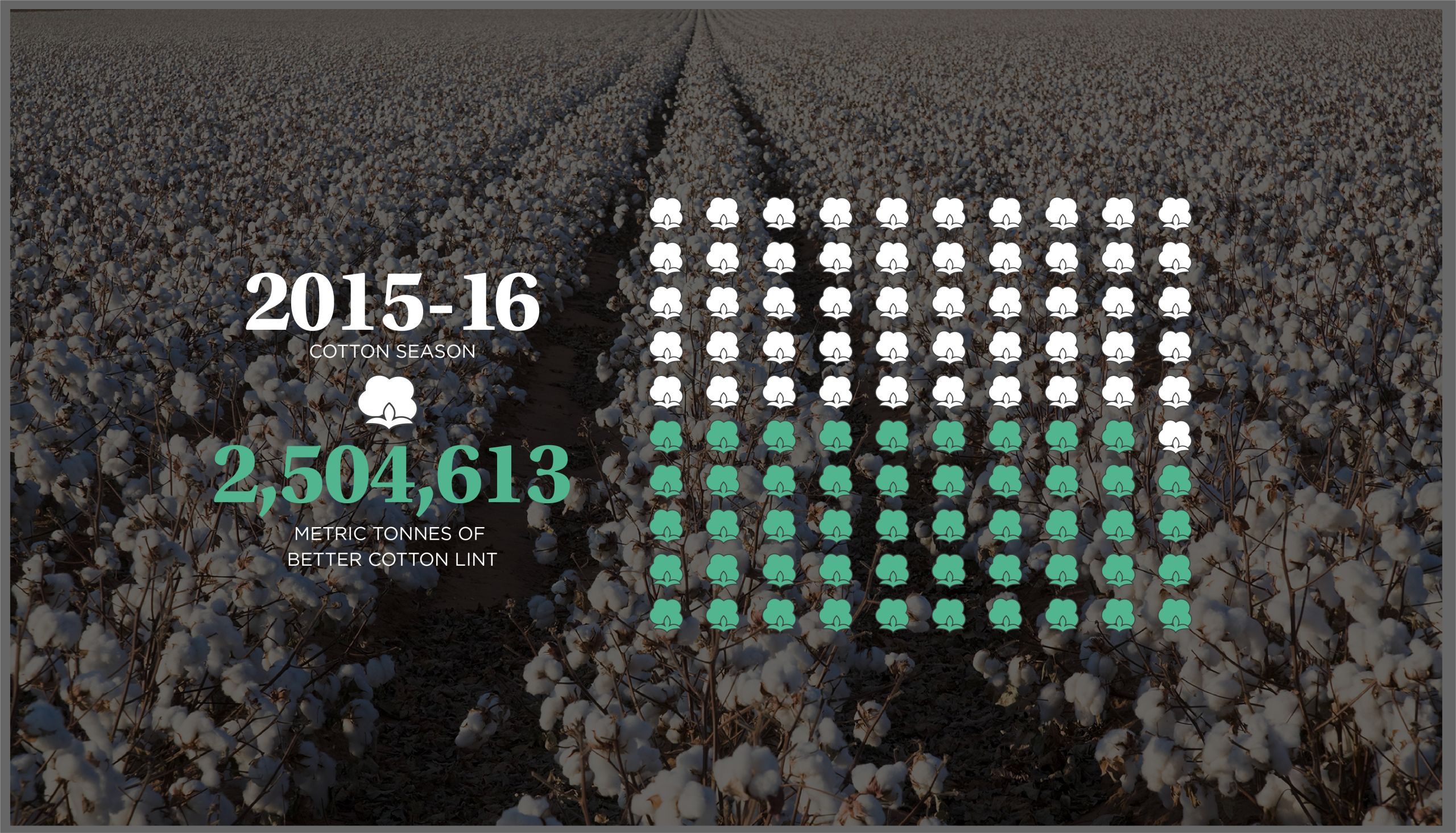 Better Cotton uptake now accounts for 4% of global cotton consumption. This has moved us closer to our 2020 target to see 10% of global cotton production sourced as Better Cotton.