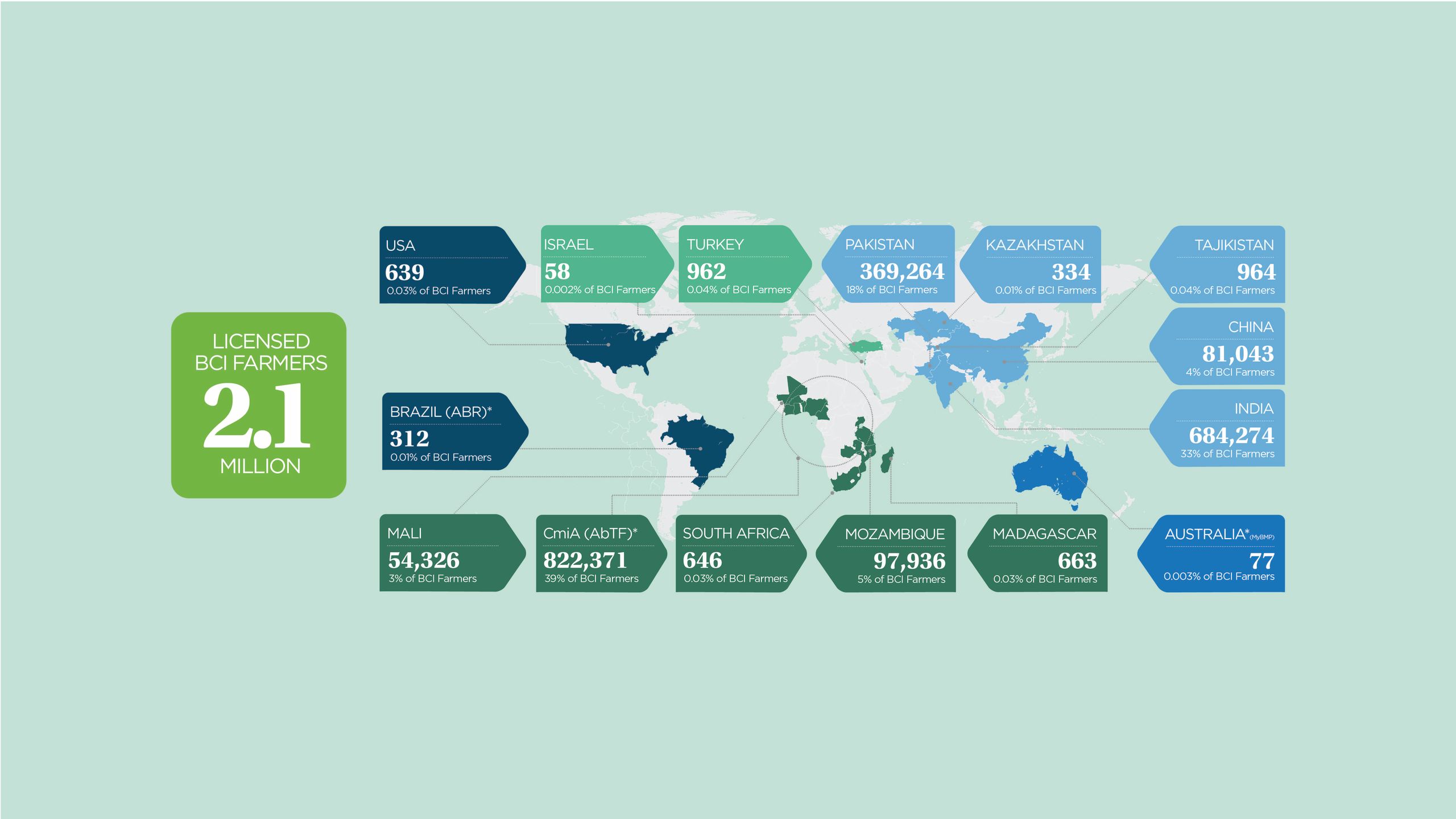 - 2.1 million cotton farmers received a BCI license to sell their cotton as Better Cotton – 99% are smallholders farming on less than 20 hectares.