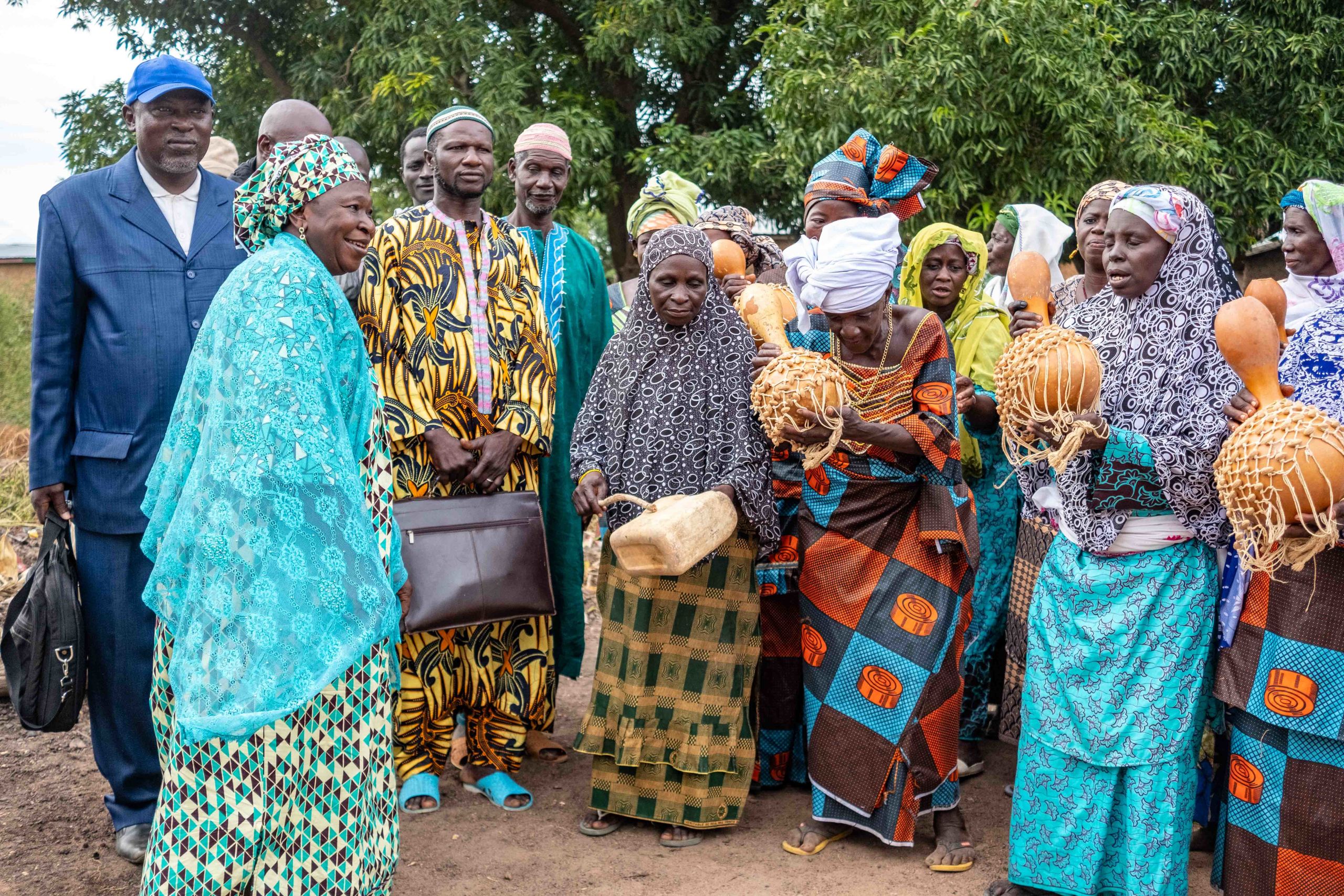 Tata Djire with people in the cotton community. © Better Cotton/Nicholas Adatsi